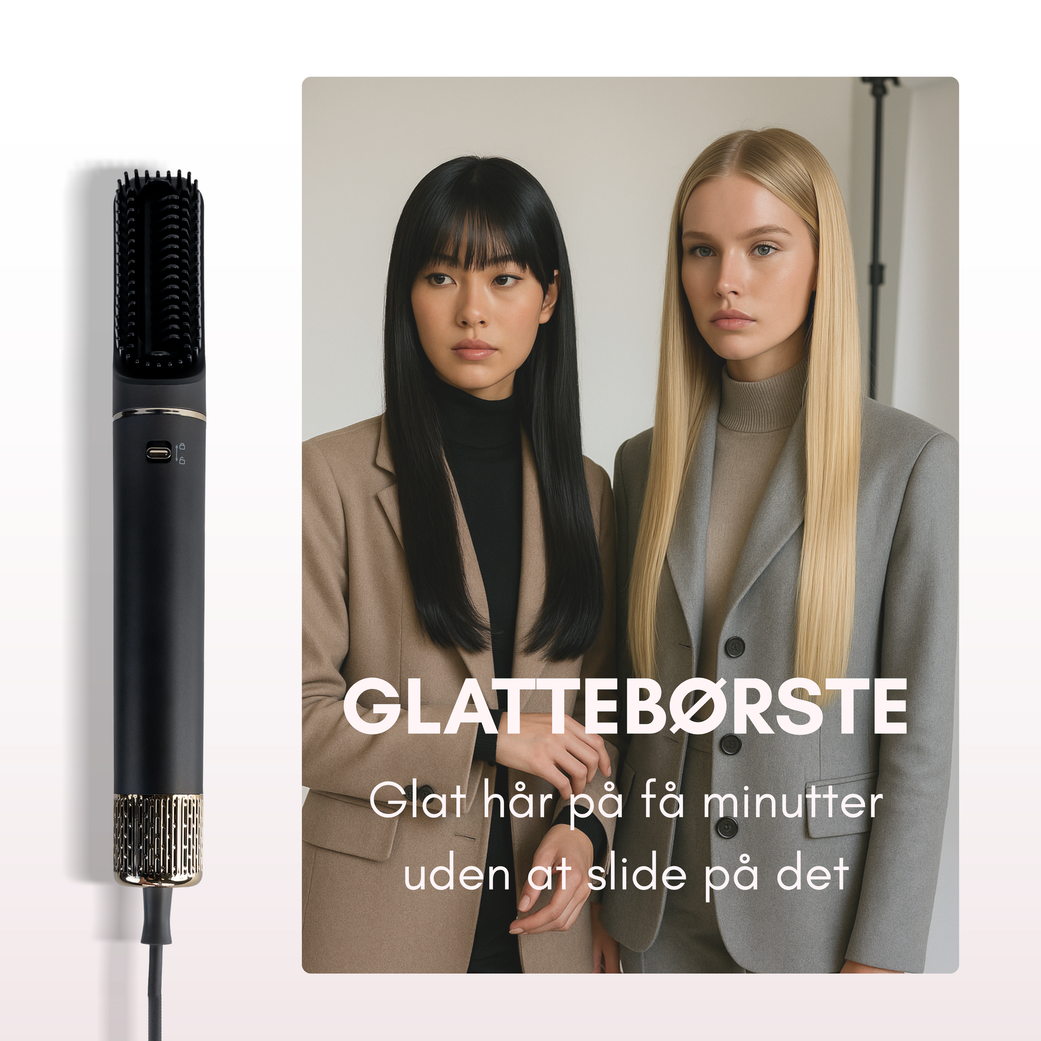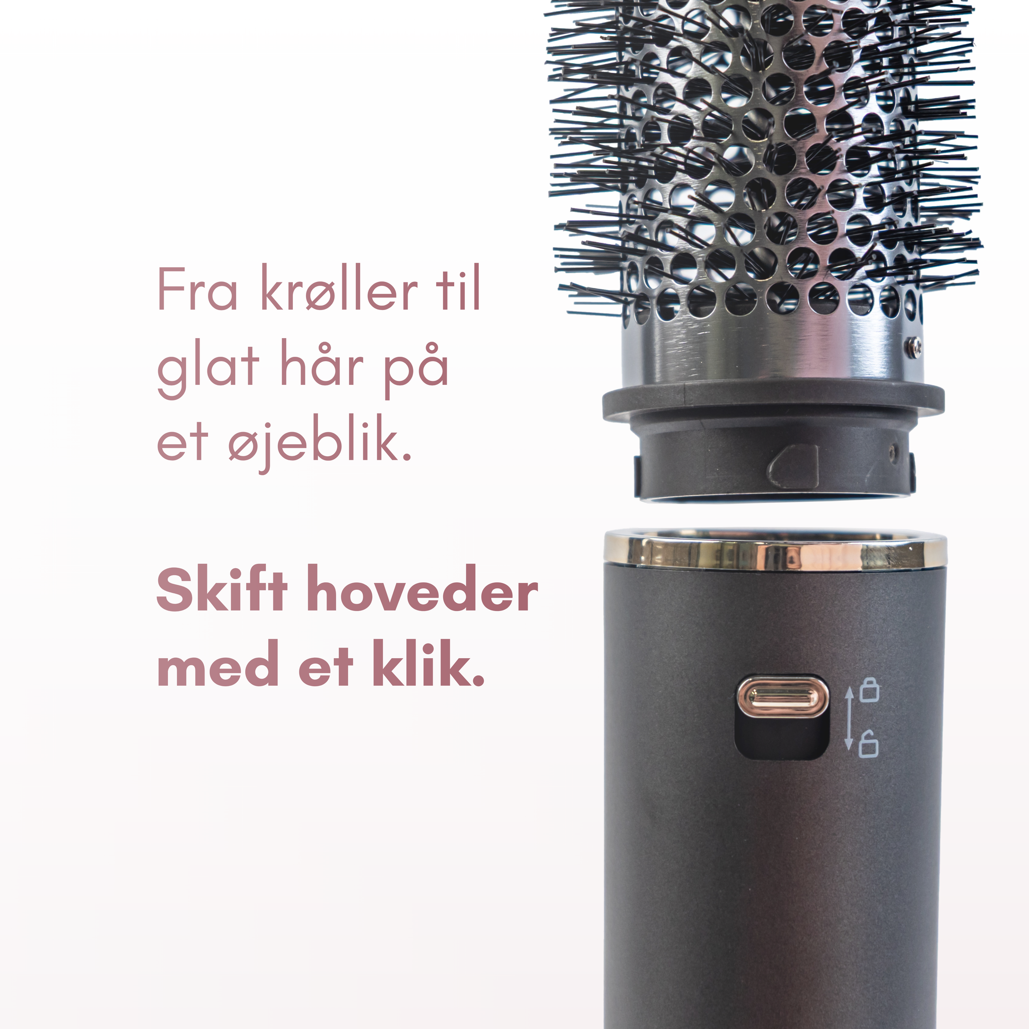 Airshaper virker til både fint, normalt og kraftigt hår. Der følger flere børstehoveder med, så du nemt kan tilpasse stylingen efter din hårtype og længde.