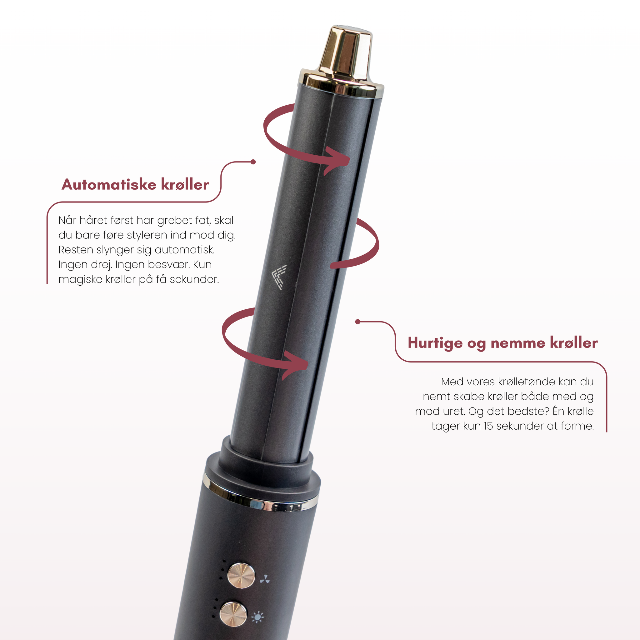 Airshaper bruger luft i stedet for direkte varme, og du kan selv justere temperaturen. Det gør den markant mere skånsom end traditionelle glatte- og krøllejern.